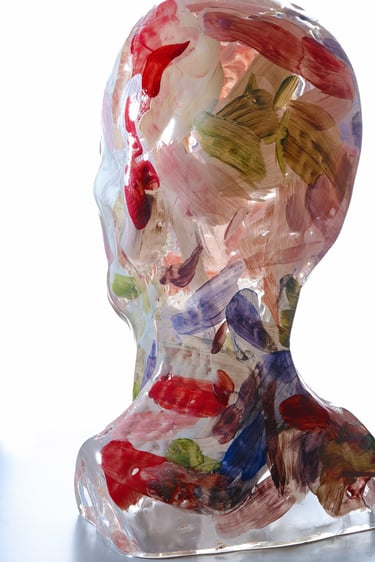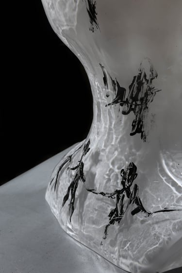 foukané sklo, stříbření, malba sklářským pigmentem