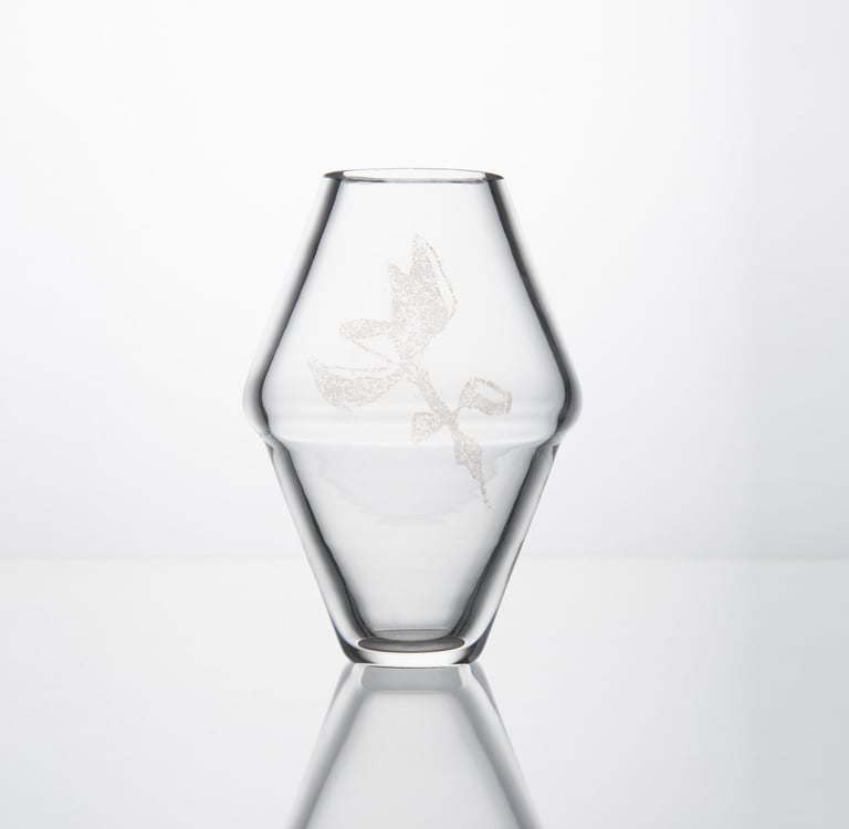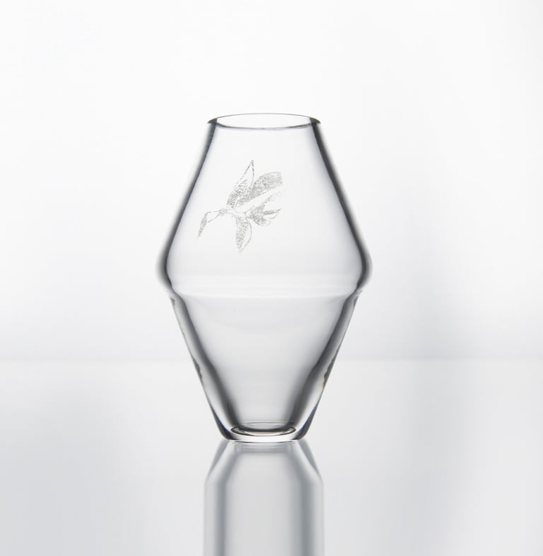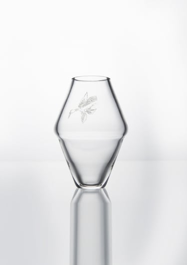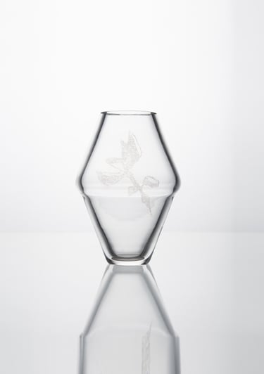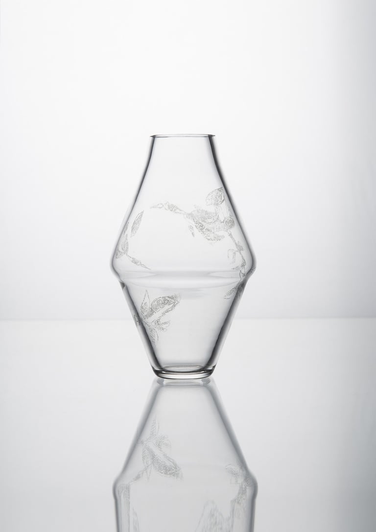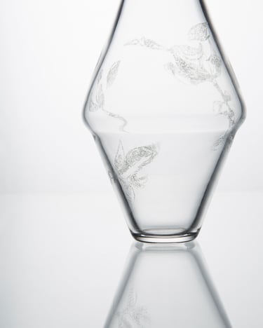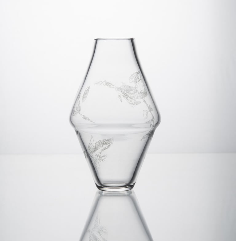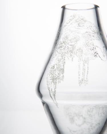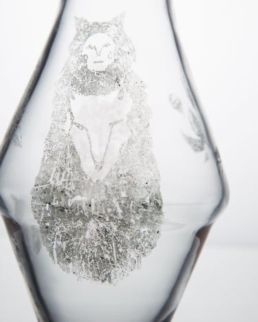 Vázy inspirované prolínáním světa přírody, zvířat a lidí. Symboly a postavy jsou vytvořené technikou litografie.
