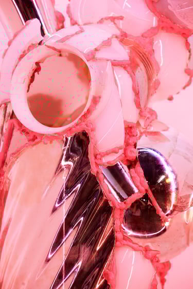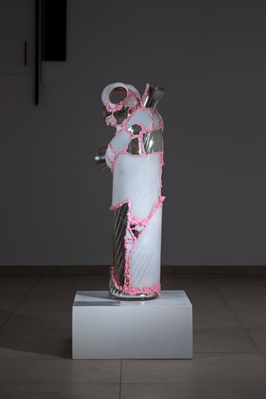 Artefakt je jakýmsi mementem mori náhle ukončených radovánek jedné domácnosti –„žvýkačkami“ slepené vzácné střepy pozměnují nejen hodnotu a tvarosloví puvodních objektů patřících jiné generaci, ale zhmotňují také sloup vzpomínek generace současné.